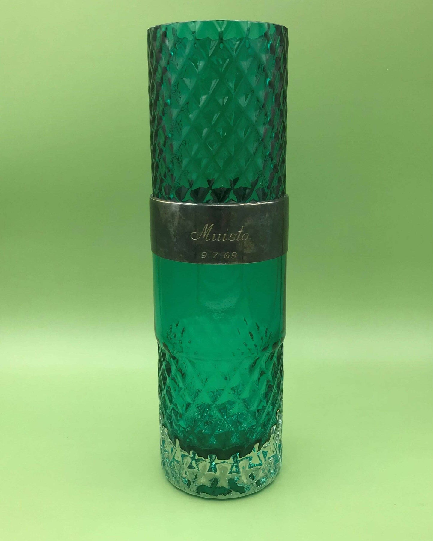 CONDITION: Vase without collar, flawless. There are a few small scratches in the rimmed vase and an alpaca rim with the text: Muisto 9.7.69.