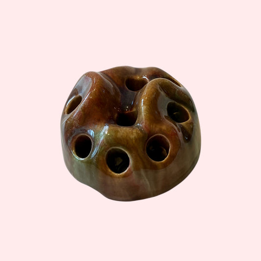 Kupittaan savi maljakko ruskea kukka